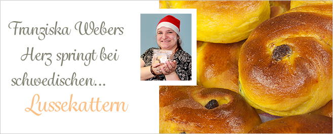 Hinter unserem heutigen Türchen versteckt sich mal keiner unserer liebsten Blogger, sondern unsere liebe Mitarbeiterin Franziska Weber. Sie hat uns mit ihrem Rezept für schwedische Lussekattern aus unseren Weihnachtssocken gehauen und das wollen wir Ihnen nicht vorenthalten! Das Gebäck wird traditionell in Schweden von der weißgekleideten Lichterkönigin Lucia im Dezember in Schulen, Kindergärten, Arbeitsstätten und Altenheimen verteilt, um ein wenig Licht zu verbreiten, wenn in der dunklen Jahreszeit die Sonne nicht mehr aufgeht. Bei diesem wunderbaren Gebäck geht uns ein Licht auf: Unbedingt nachbacken!